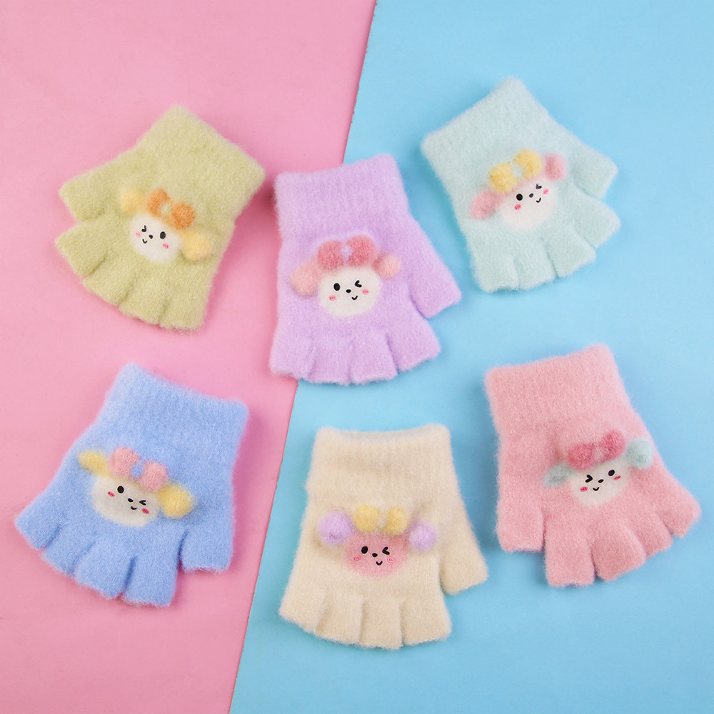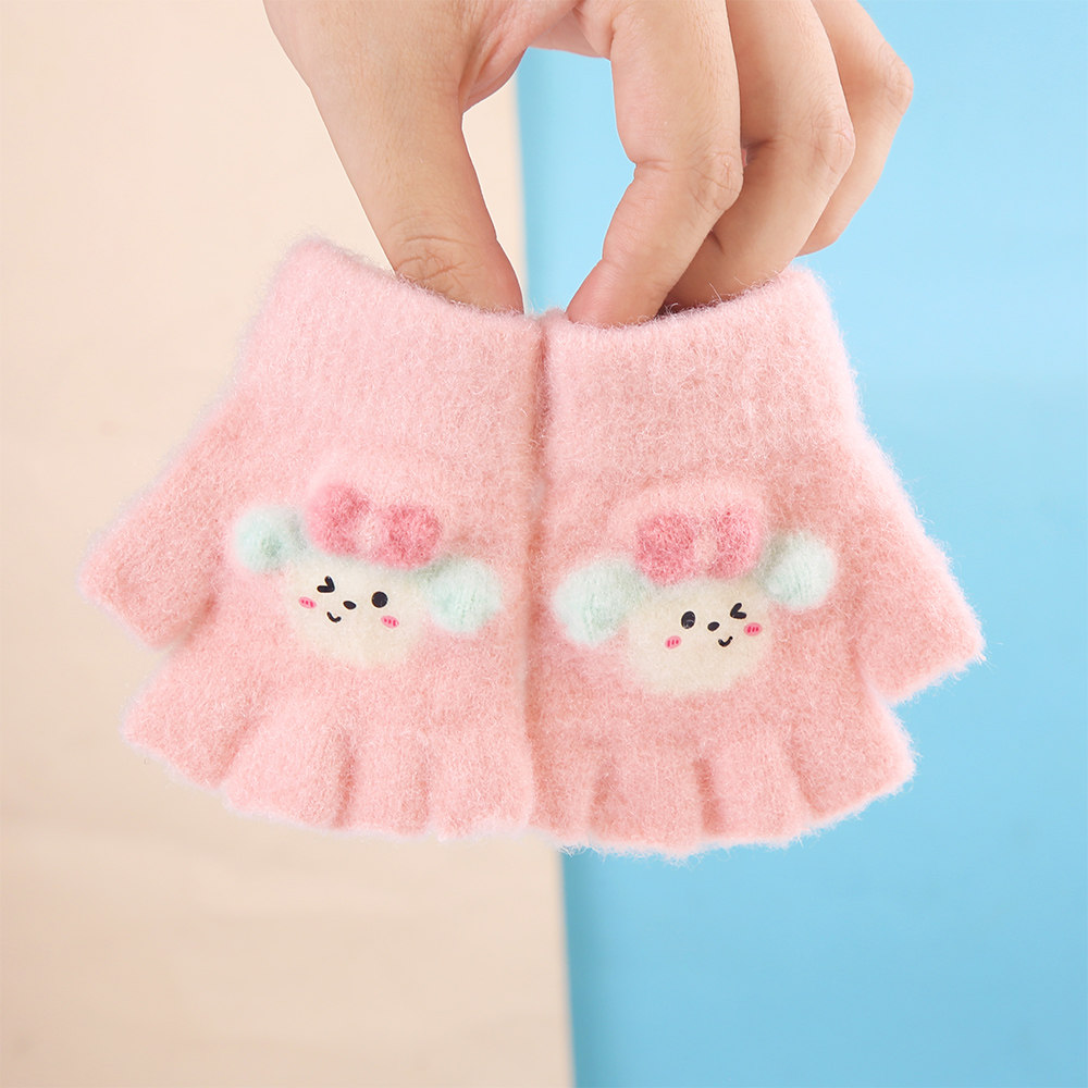 儿童手套秋冬天半指保暖宝宝女童可爱婴幼儿加厚小孩0-2岁小蘑菇