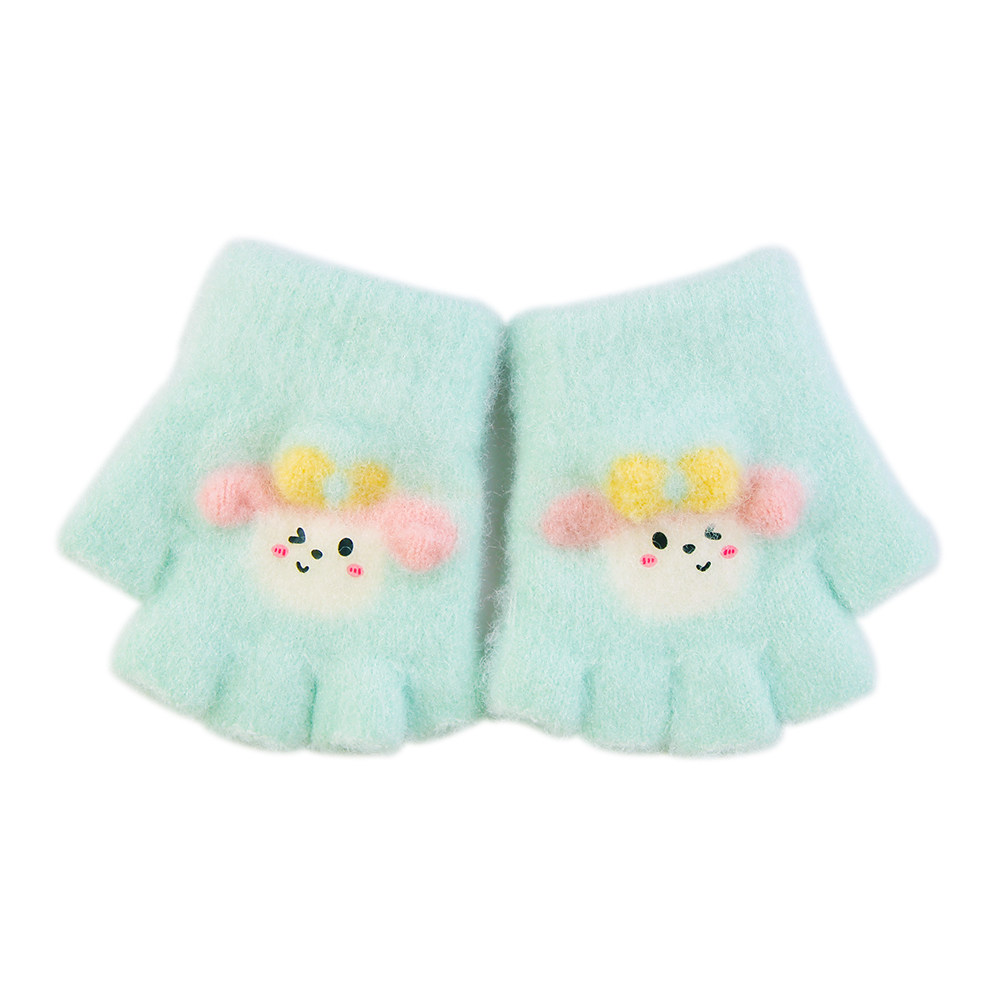 1-3岁婴儿手套冬季儿童女孩可爱翻盖五指套防冻保暖卡通蓝色半指