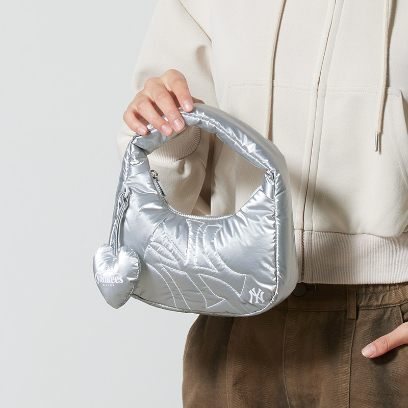 韩国MLB正品复古老花金属皮质腋下包洋基队女款单肩挎包手提包
