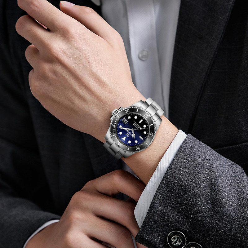 Sungoder瑞士渐变色胶鬼王系列时尚高档商务防水全自动机械男士表