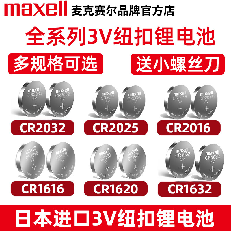 Maxell麦克赛尔CR2032/CR2025/CR2016CR1632日本进口纽扣电池适用奥迪现代名图奔驰大众电子秤汽车钥匙遥控