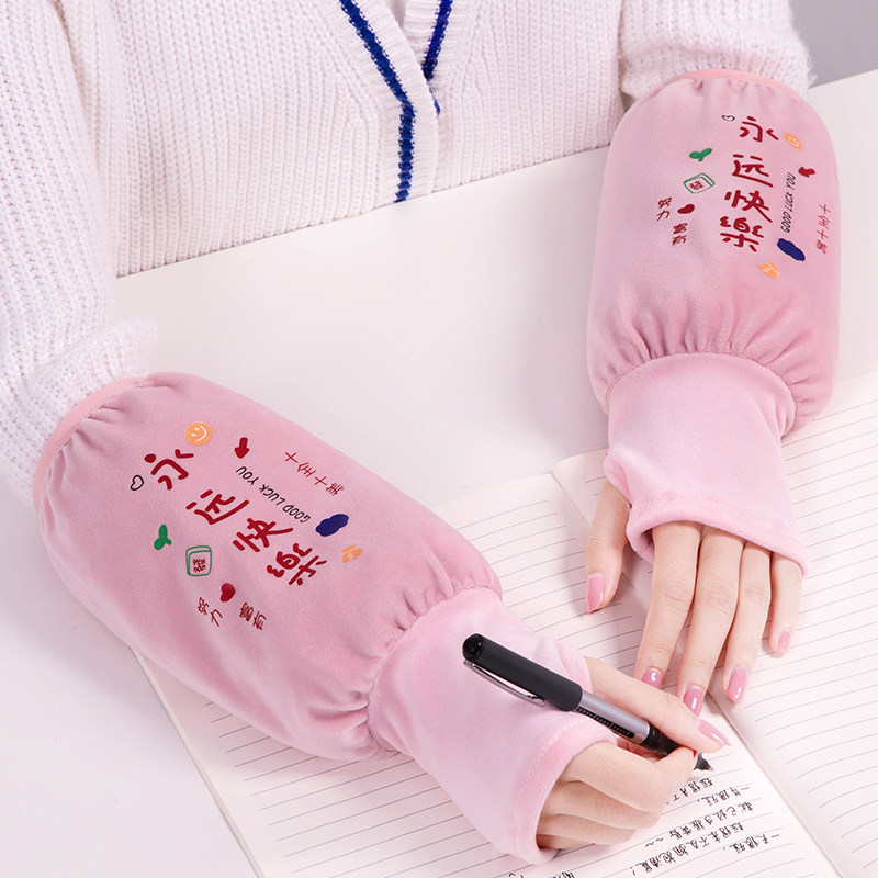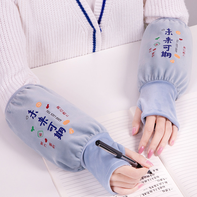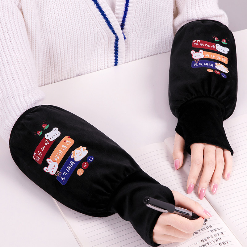秋冬女手套袖套二合一小学生防脏套袖工作羽绒服护袖袖头黑色连指