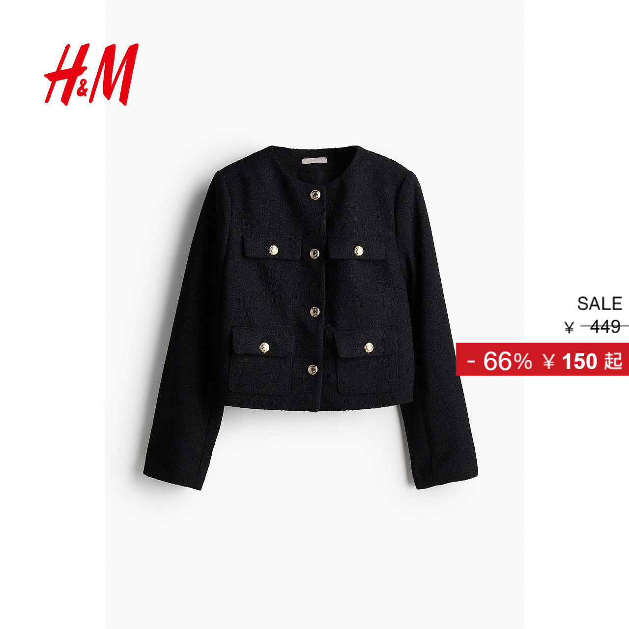HM女装短外套秋季圆领单排扣长袖千金粗花呢小香风外套1241437