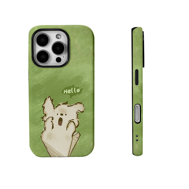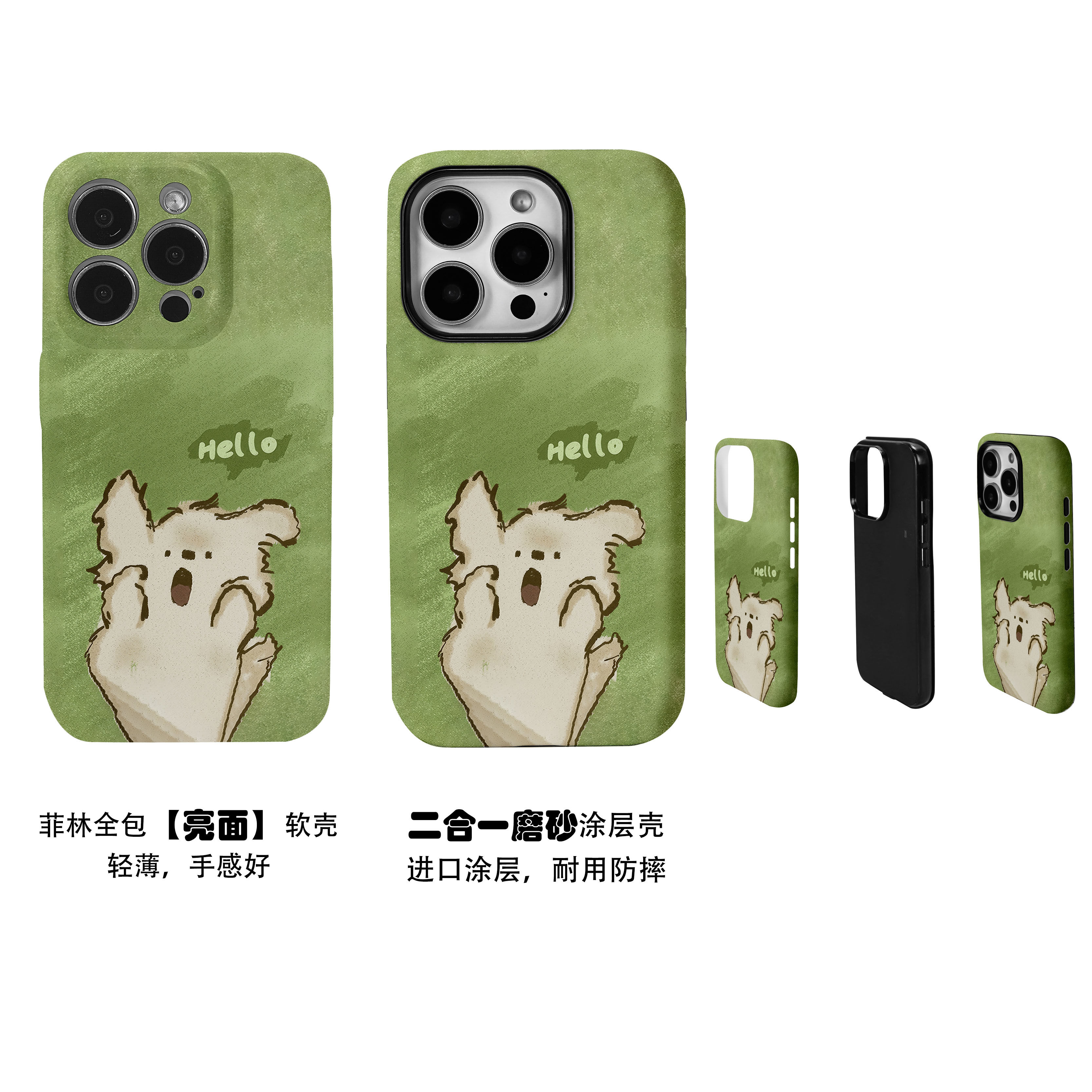 可爱绿色潦草小狗卡通菲林二合一手机壳适用苹果17nova14华为p70mate60小米15opporen14ovivo荣耀300iPhone16