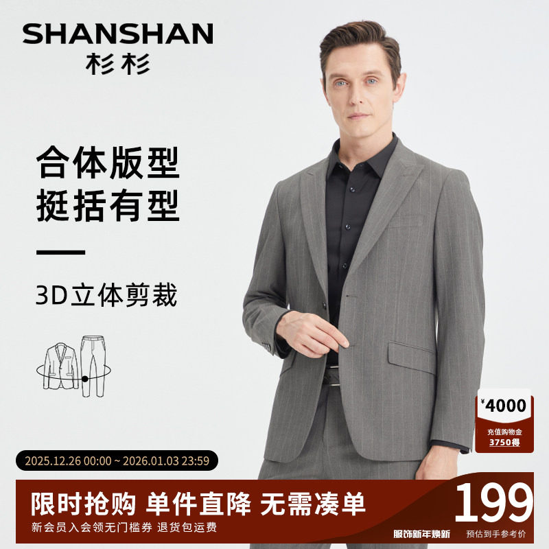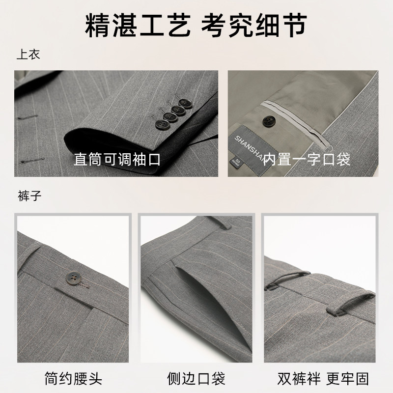 SHANSHAN杉杉男士西服套装结婚礼服新郎婚礼商务西装职业正装卡其