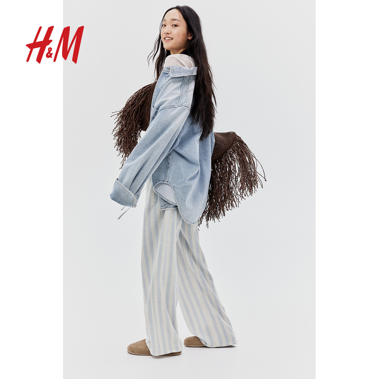 HM女装休闲裤2025冬季新款低腰简约潮流松紧腰抽绳直筒裤1261667