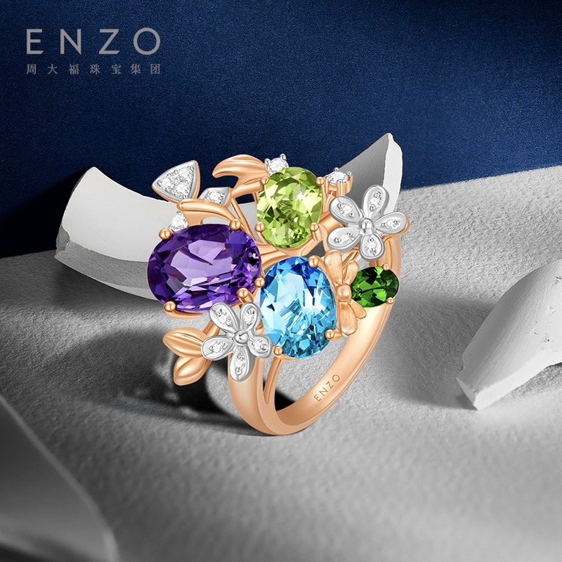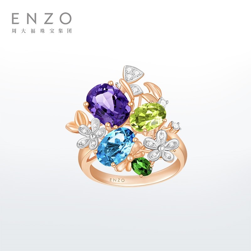ENZO「彩虹花球」18K金多彩宝石钻石戒指女EZV6669新年礼物