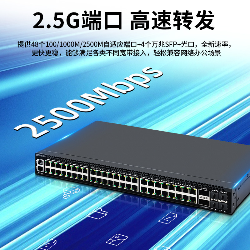 联果 48口2.5G交换机+4个10G/25G光+2个40GQSFP+ 三层网络管理型VLAN划分网咖电竞酒店云机房专用 4风扇散热