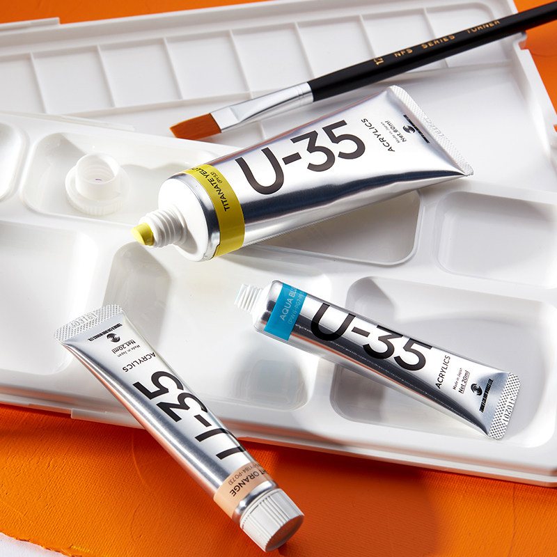 日本透纳U-35丙烯颜料bjd不掉色防水墙绘木材美术生专用防晒diy肌理画纺织鞋涂鸦材料白色金色染料儿童绘画