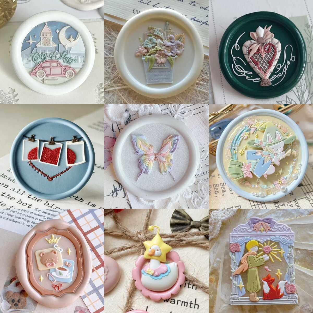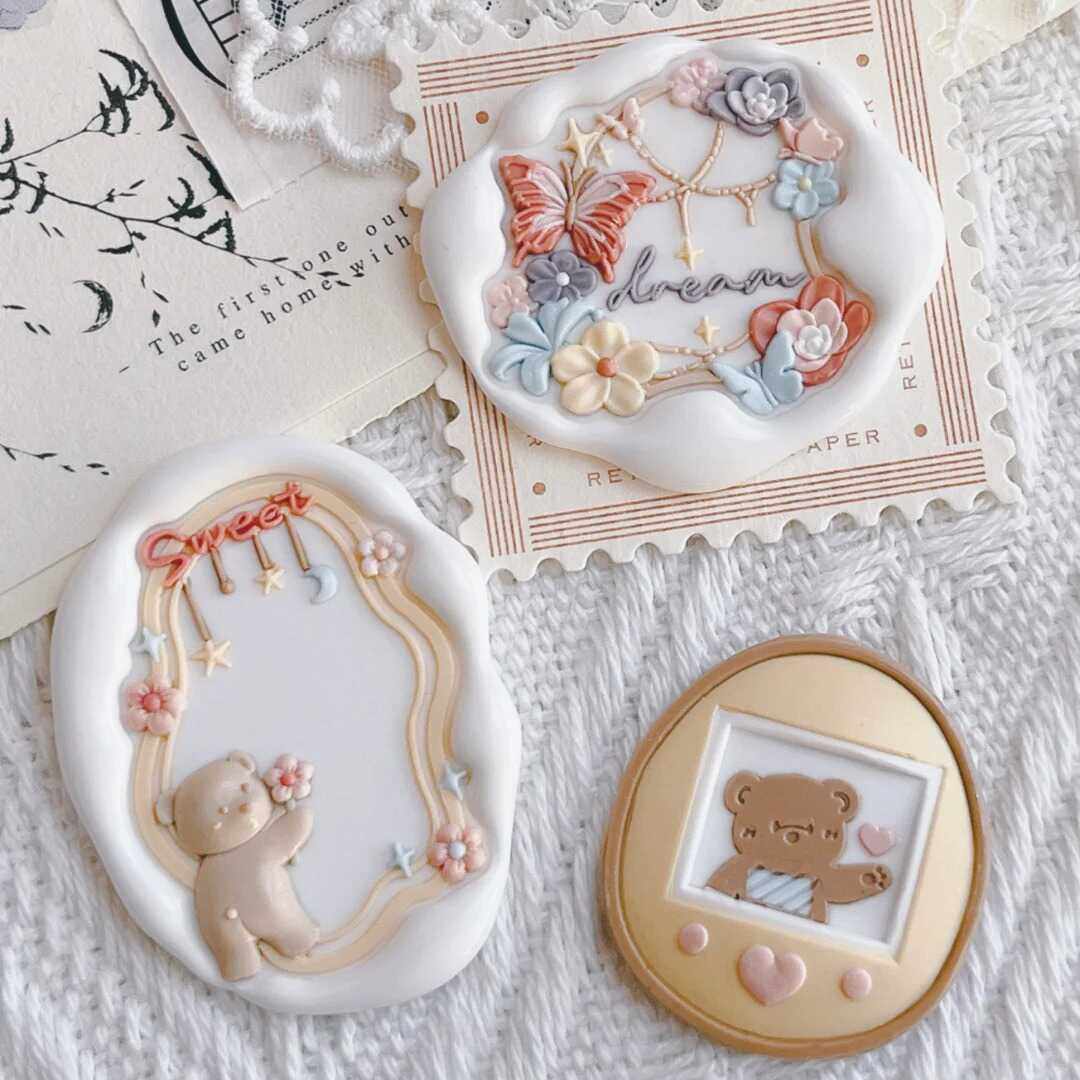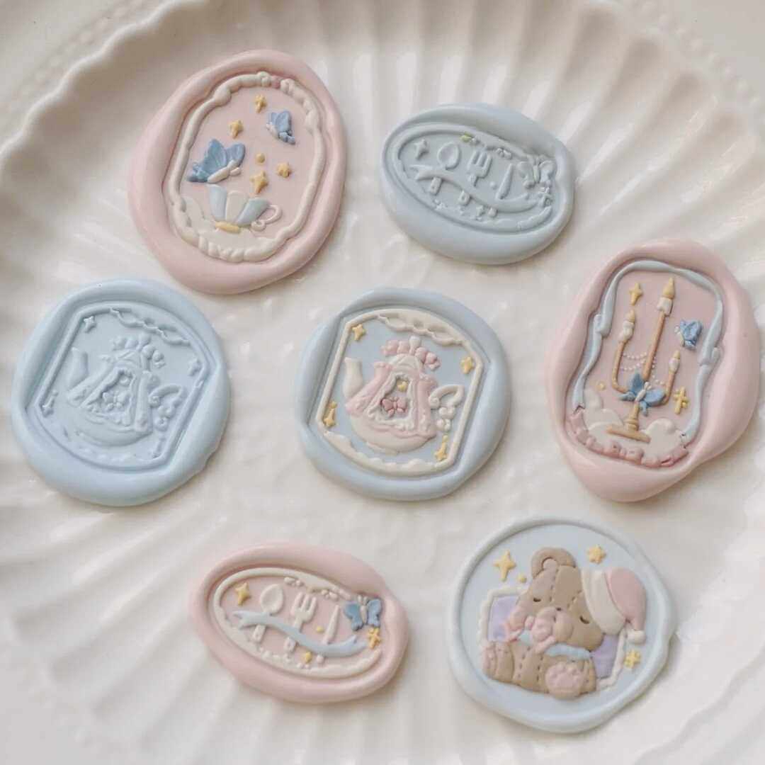 火漆印章可爱小熊下午茶系列章头公主童话连衣裙蝴蝶异形浮雕铜头