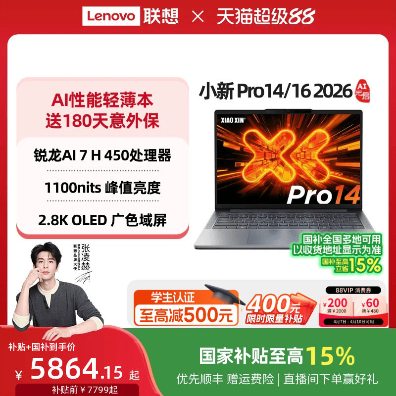 【88券+国补】联想小新Pro14/Pro16/Pro14GT/Pro16GT 锐龙标压处理器大学生笔记本 游戏办公轻薄本笔记本电脑