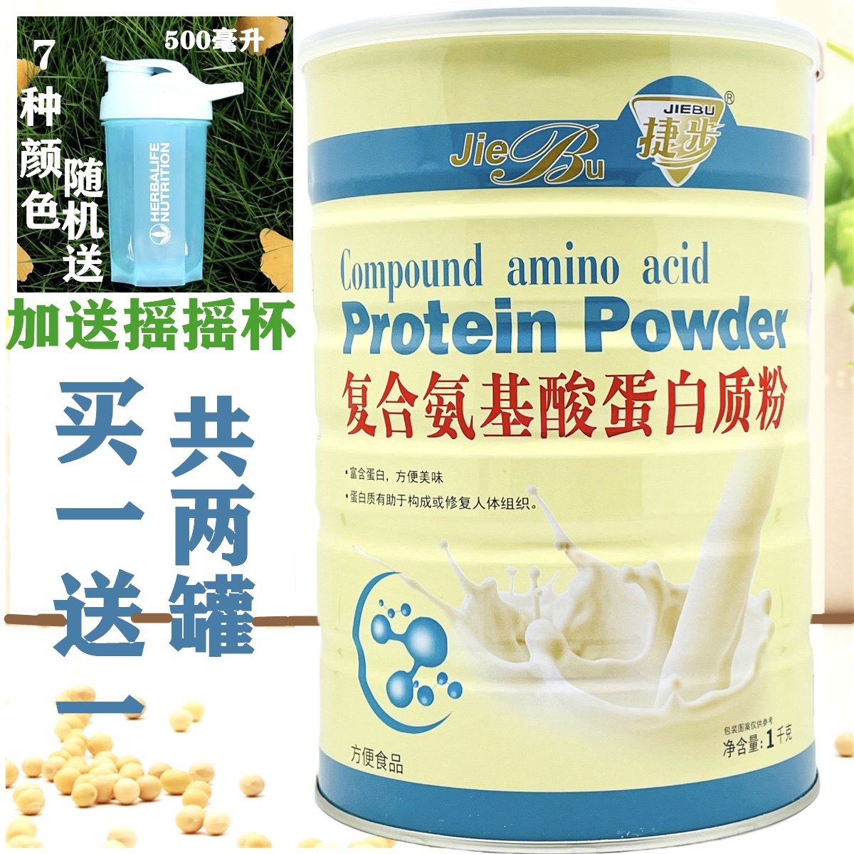 买1送1捷步复合氨基酸蛋白质粉1000克/罐发2罐共2000克加送摇摇杯