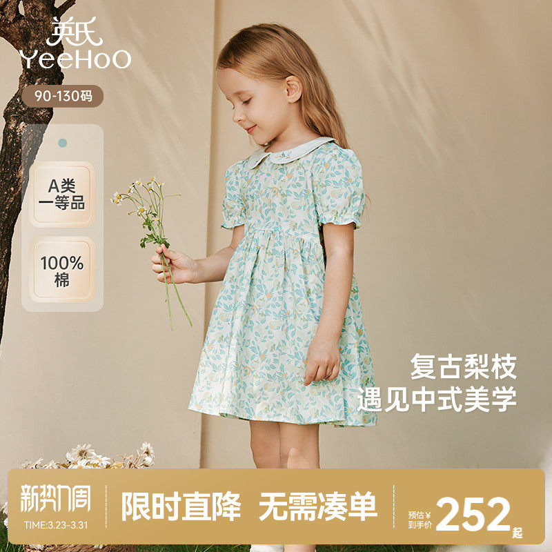 英氏女童连衣裙碎花夏季泡泡袖纯棉新中式宝宝裙子春季公主裙