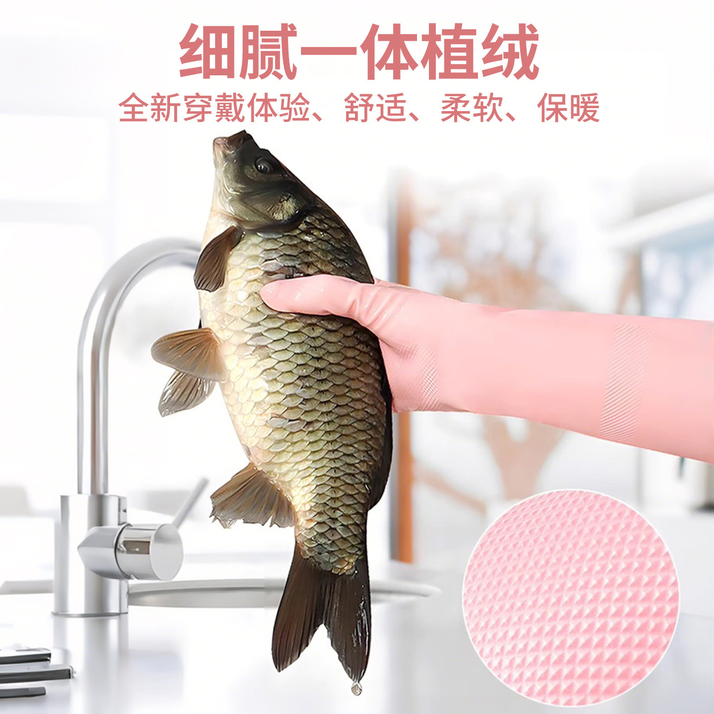 丁腈耐用洗碗手套植绒加绒一体家务清洁厨房专用冬天加厚防水刷碗