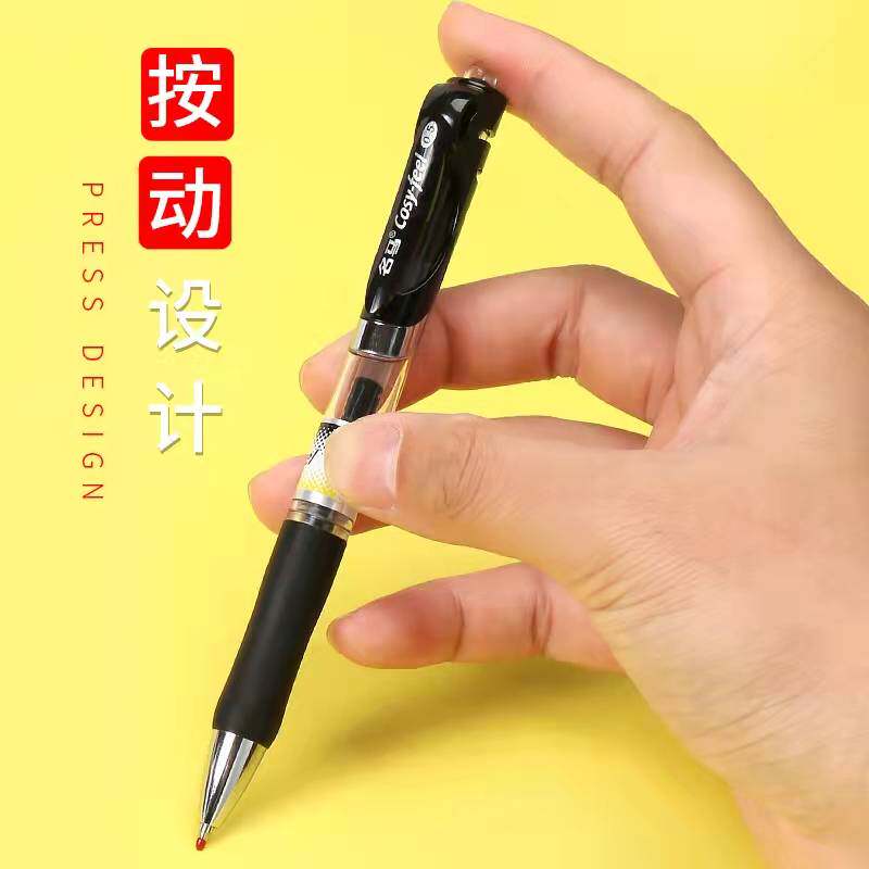 晨光中性笔按动式黑色水笔红色蓝色速干顺滑大容量学生用碳素笔