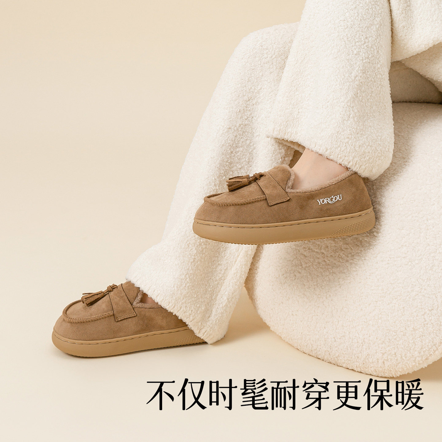 2025新款乐福豆豆鞋秋冬季女户外穿加绒保暖全包跟休闲防滑厚底男