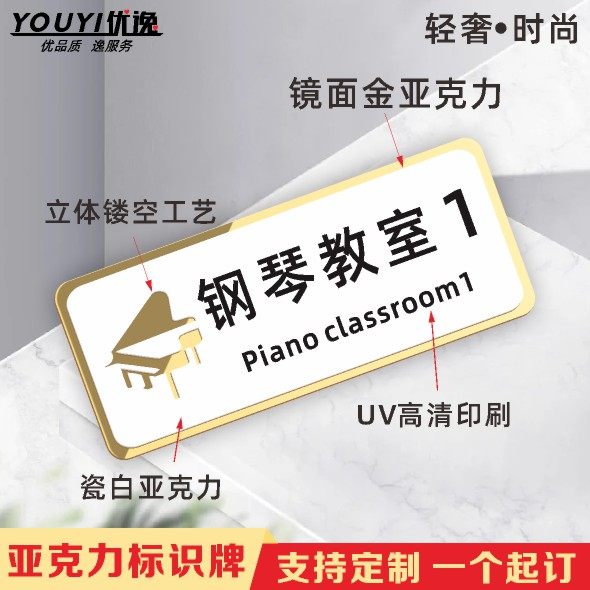 亚克力提示门牌钢琴古筝吉他乐器音乐舞蹈教室学校标识科室牌定制
