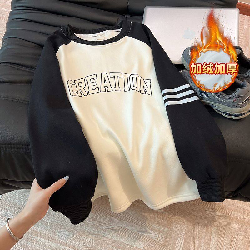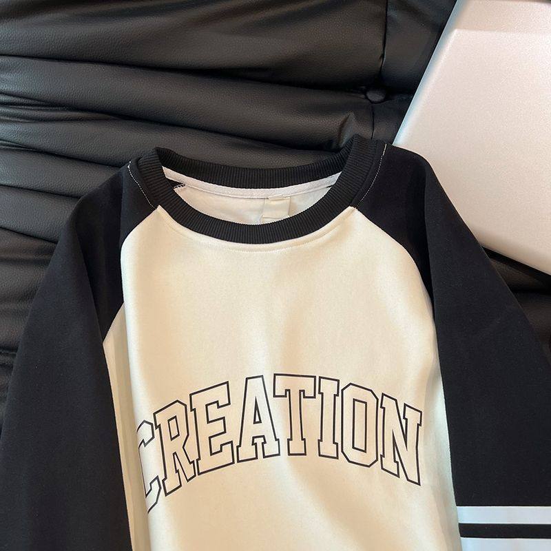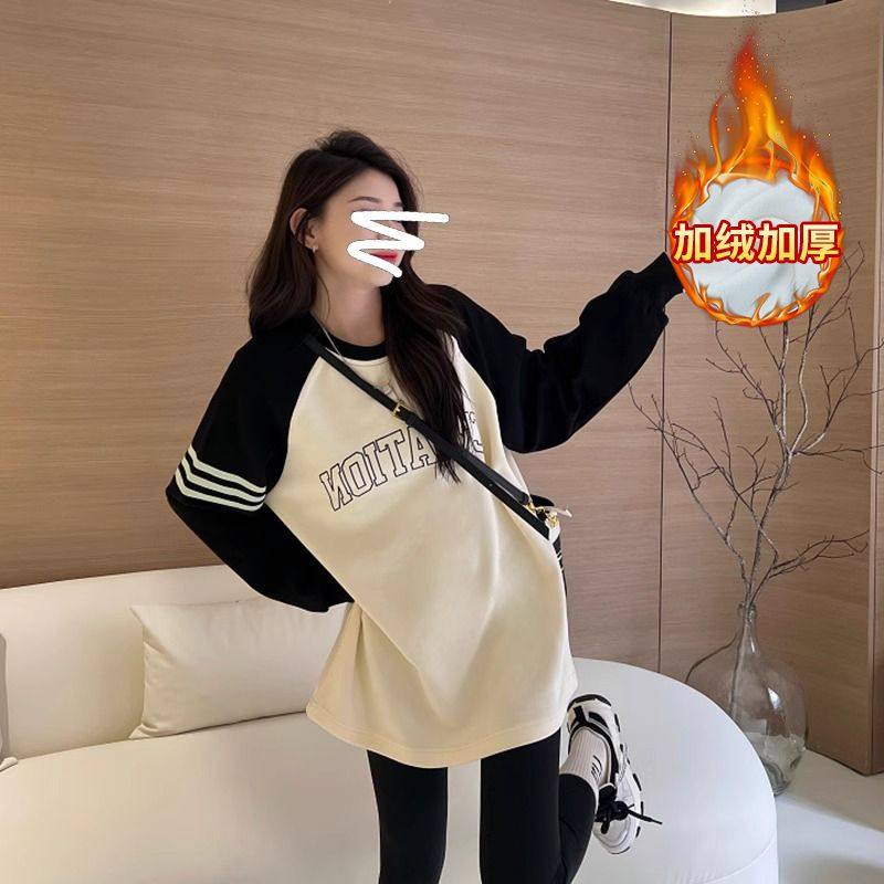 婧麒孕妇装孕期新款孕妇长袖上衣黑白拼接字母圆领卫衣宽松t恤女