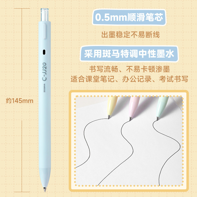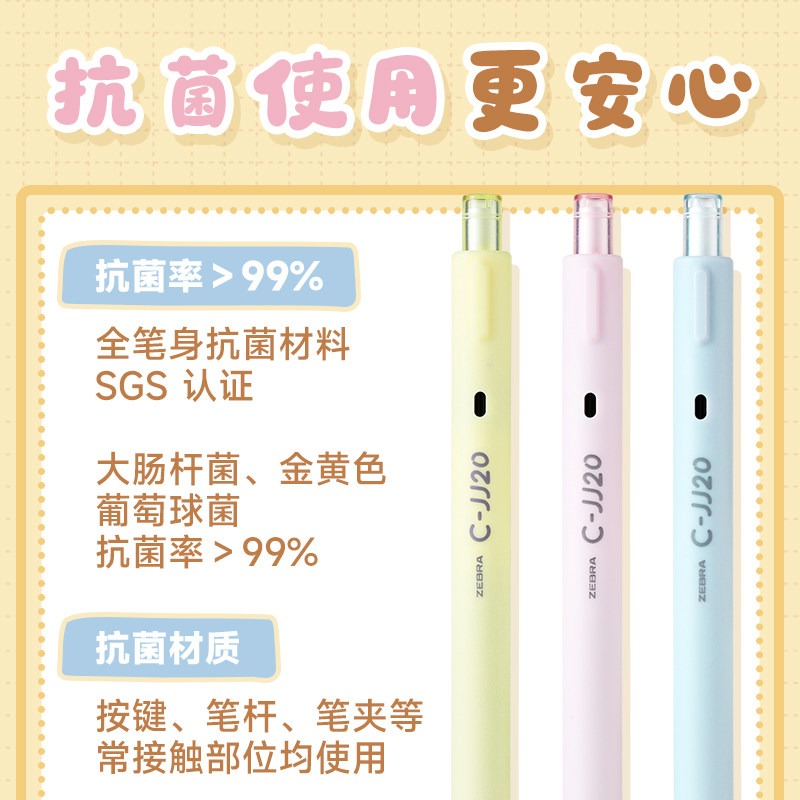 日本zebra斑马云朵中性笔JJ20抗菌笔高颜值可爱马卡龙色系按动刷题黑笔子弹头大容量学生用笔芯黑色0.5