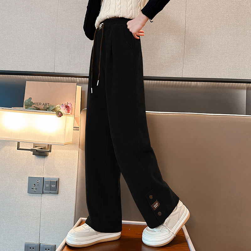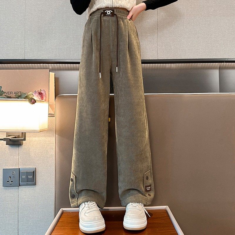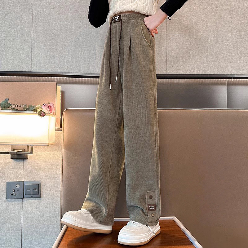 女童秋冬灯芯绒裤子2025新款儿童洋气加厚阔腿裤中大童休闲直筒裤