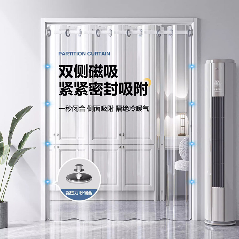 空调门帘加厚保暖挡风磁吸店铺商用防风隔断帘PVC透明塑料软门帘