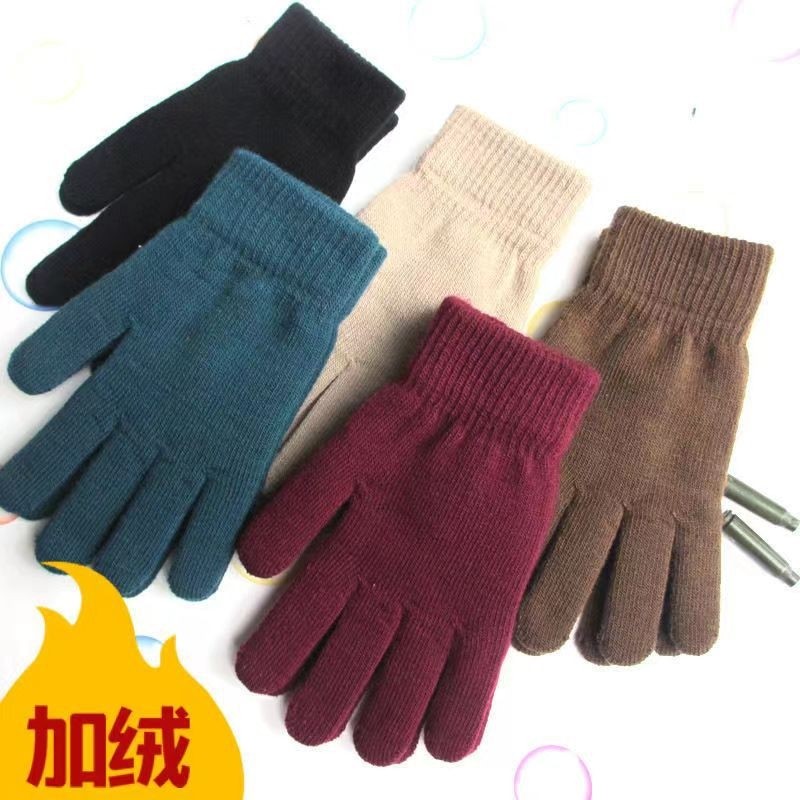 手套男女冬季通用加厚拉绒保暖户外骑行加绒纯色针织红色骑车黑色