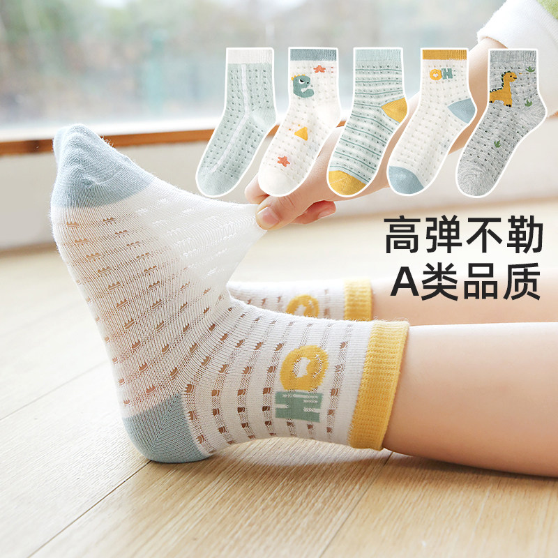 六指鼠男童薄款儿童袜子夏季网眼防臭吸汗小孩男宝宝夏天中筒棉袜