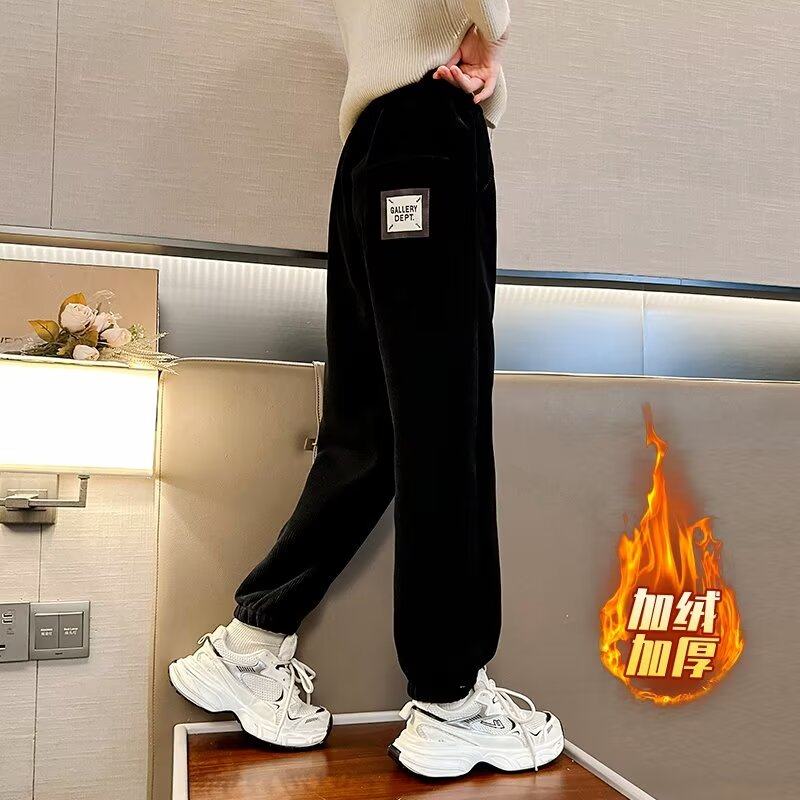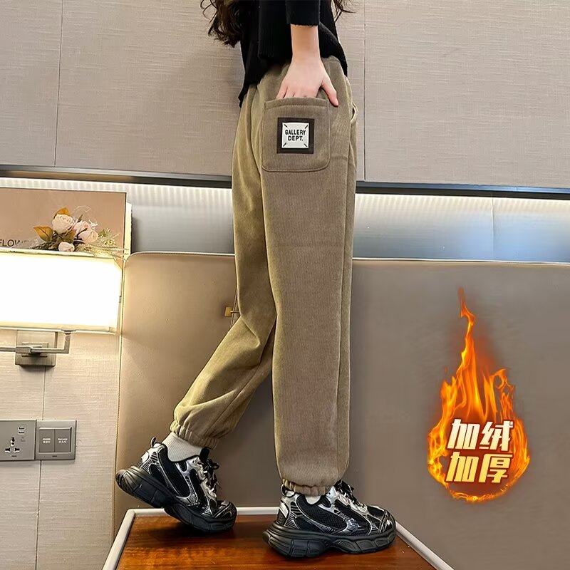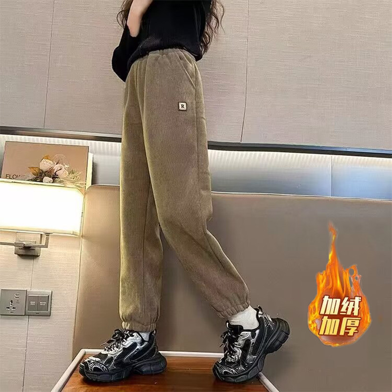 女童冬装裤子加绒加厚女大童休闲秋冬款一体绒灯芯绒裤女孩长裤潮