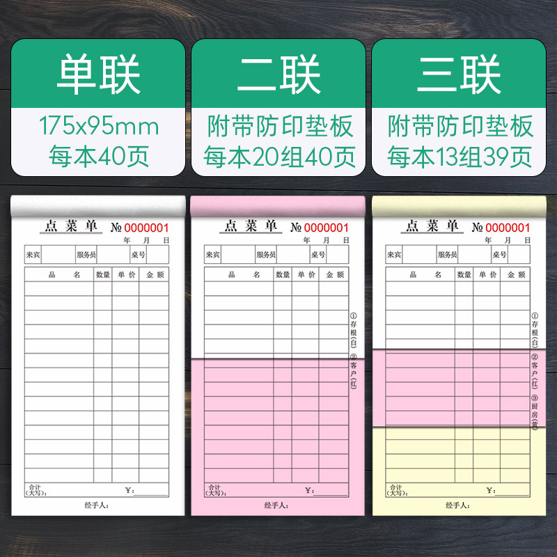 60本点菜单二联三联饭店烧烤店夜宵火锅通用无碳复写菜单本单联一联点菜本两联酒水单点餐单餐厅餐饮专用定制