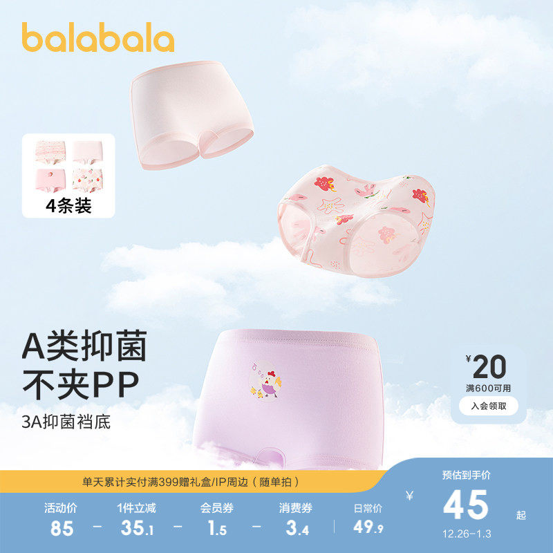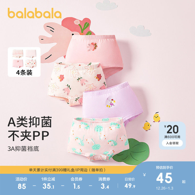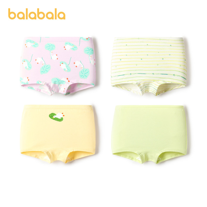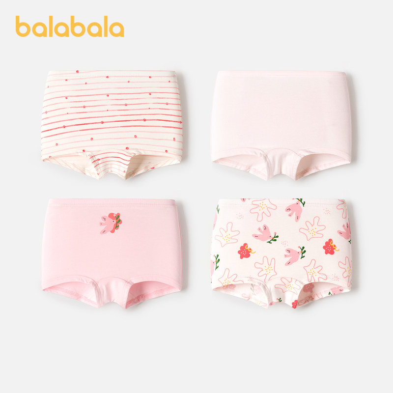 巴拉巴拉宝宝内裤平角棉儿童四角短裤女童底裤不夹PP女孩萌四条装