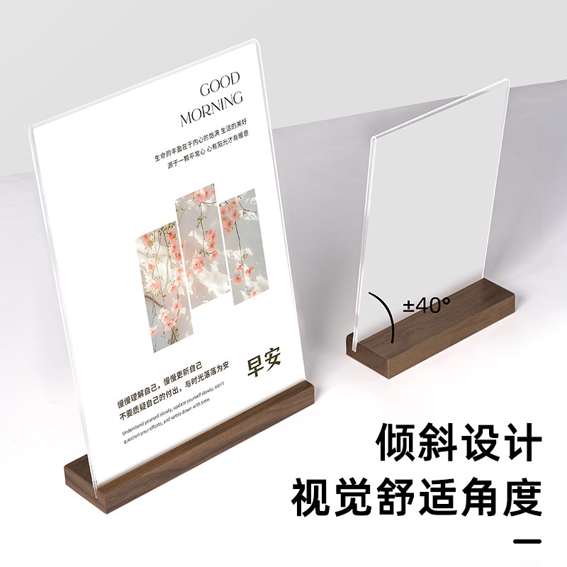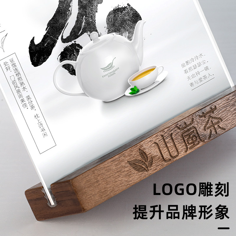 台卡实木桌牌a5亚克力展示牌胡桃木底座餐桌立牌价目表桌面标价牌木质A4广告牌奶茶店价格牌餐厅酒店台签定制