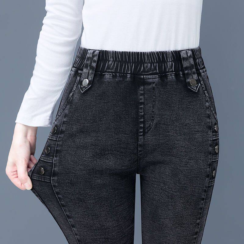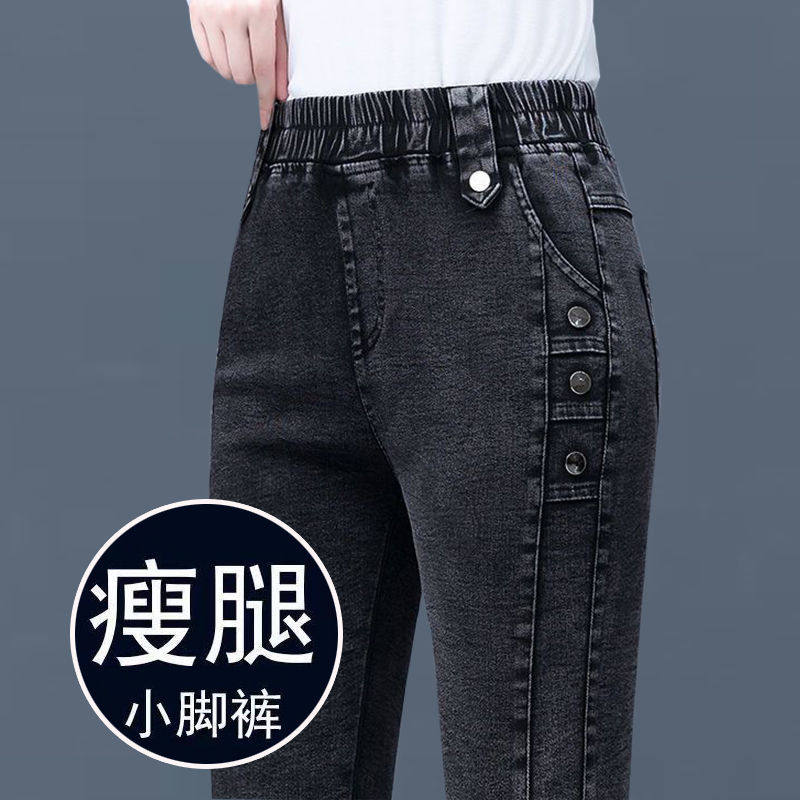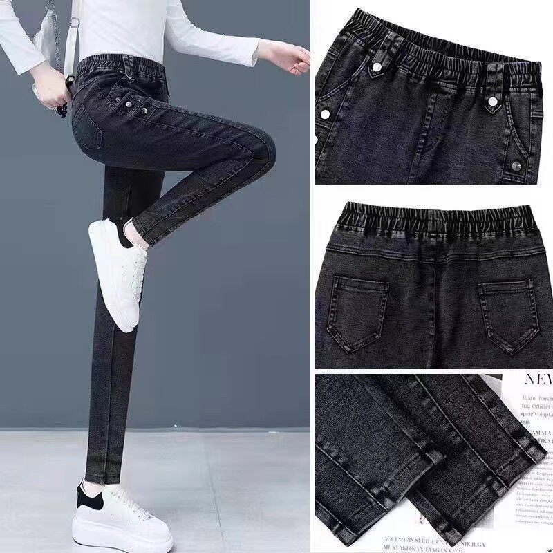 大码胖mm高腰牛仔裤女2025新款秋冬季修身显瘦松紧腰小脚长裤子