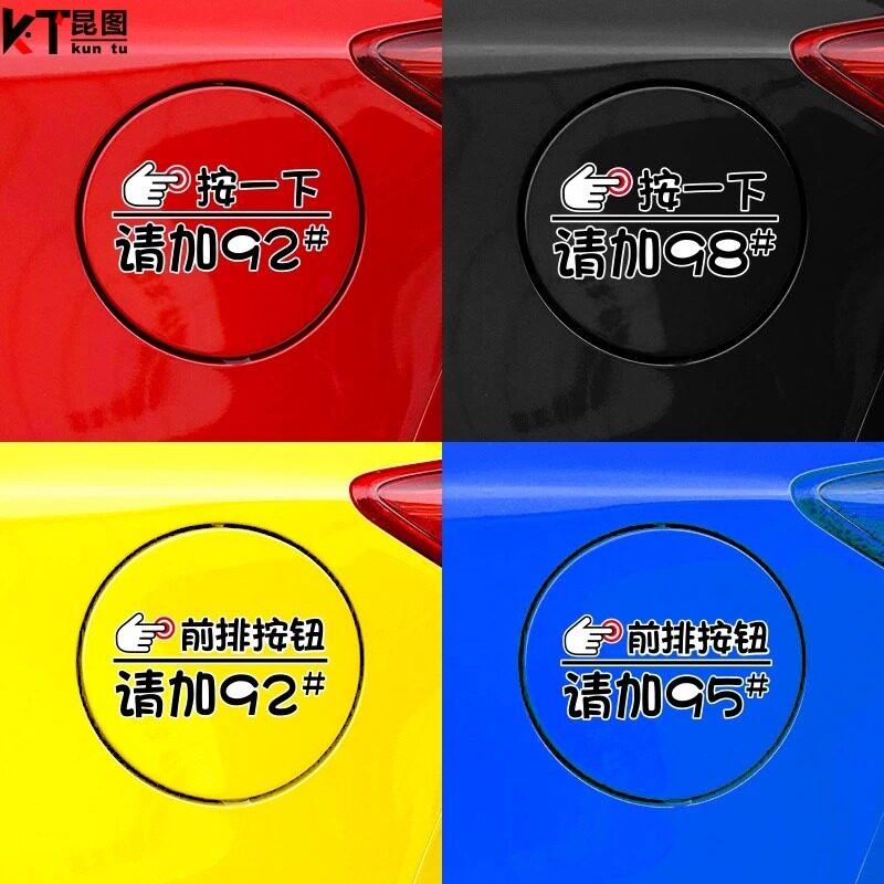 按一下汽车油箱盖贴纸个性创意油号提示加92号9598号加油车贴防水
