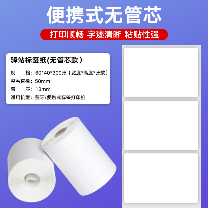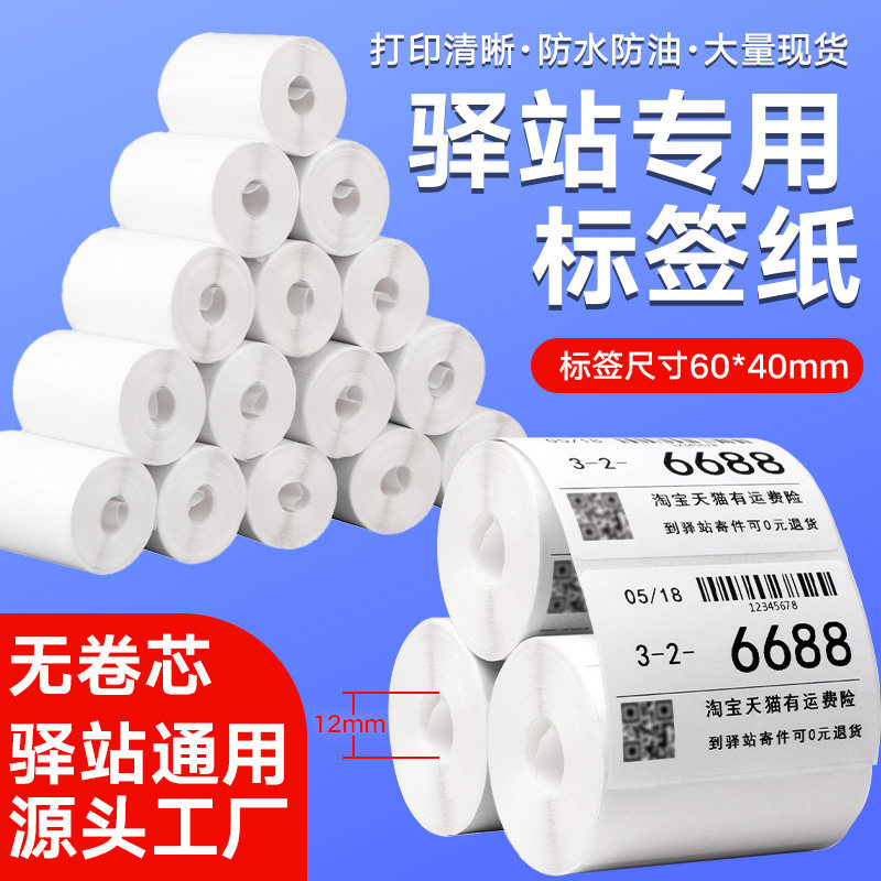 菜鸟驿站标签打印纸小票60×40快递入库货架标签贴纸妈妈驿站兔喜生活韵达不干胶无管芯三防热敏标签纸