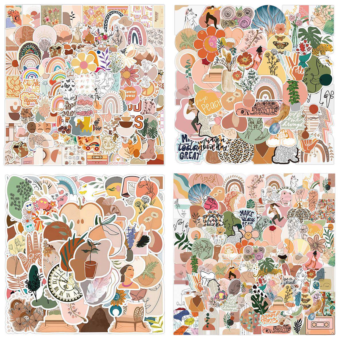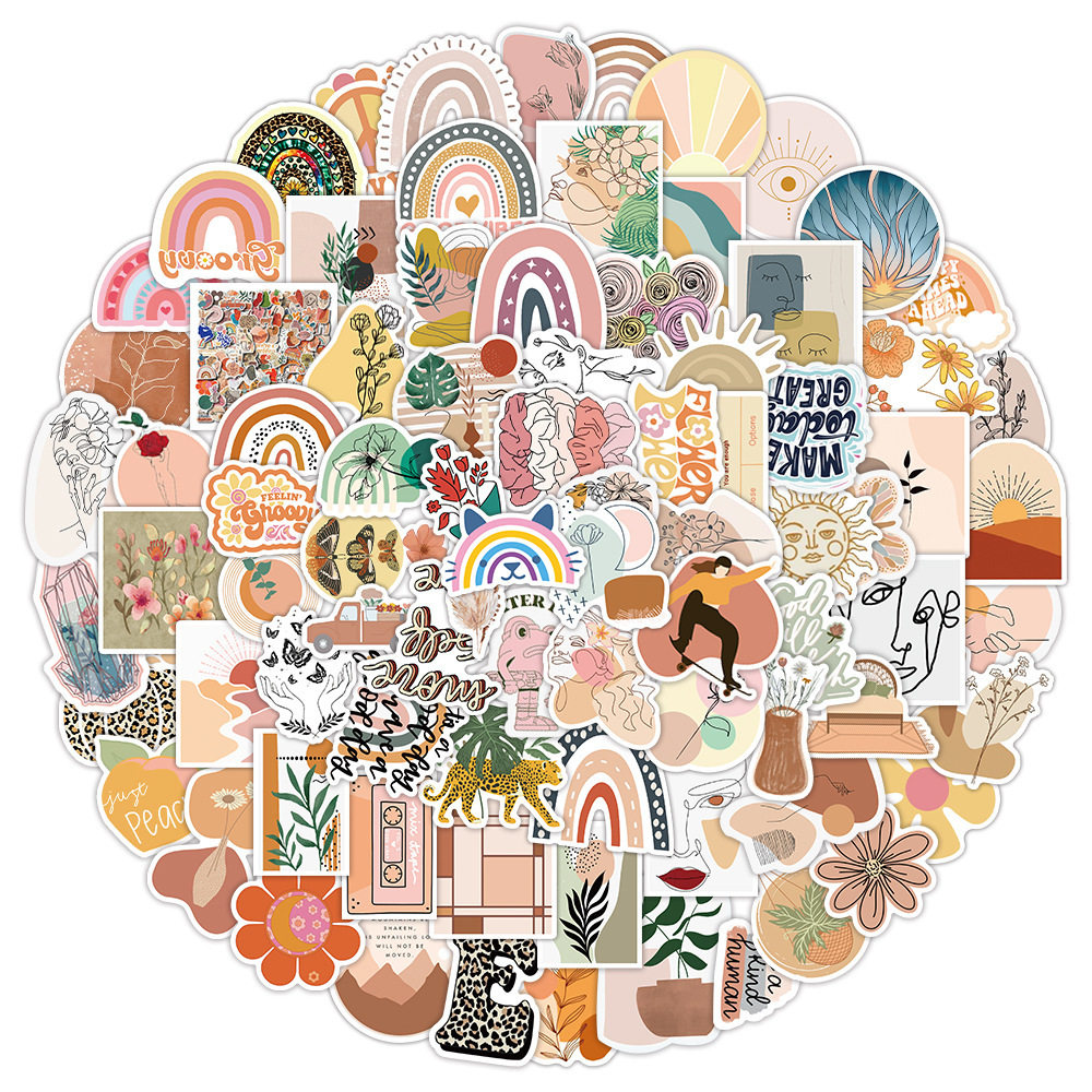 450张波西米亚涂鸦贴纸ins 风装饰行李箱汽车手机壳贴画