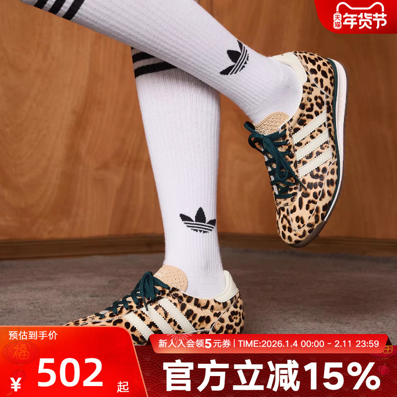 阿迪达斯三叶草2026春女「T头鞋」经典复古豹纹薄底运动鞋 KI4205