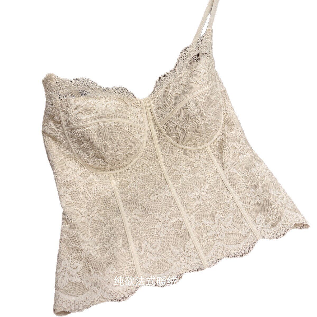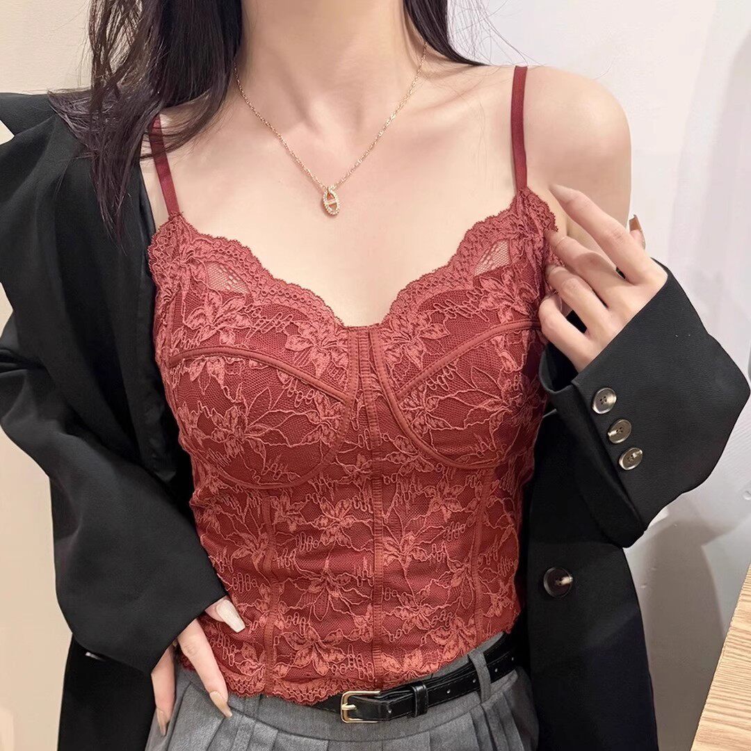 法式纯欲显瘦内搭蕾丝秋冬磨毛一体杯吊带背心上衣外穿白色黑色