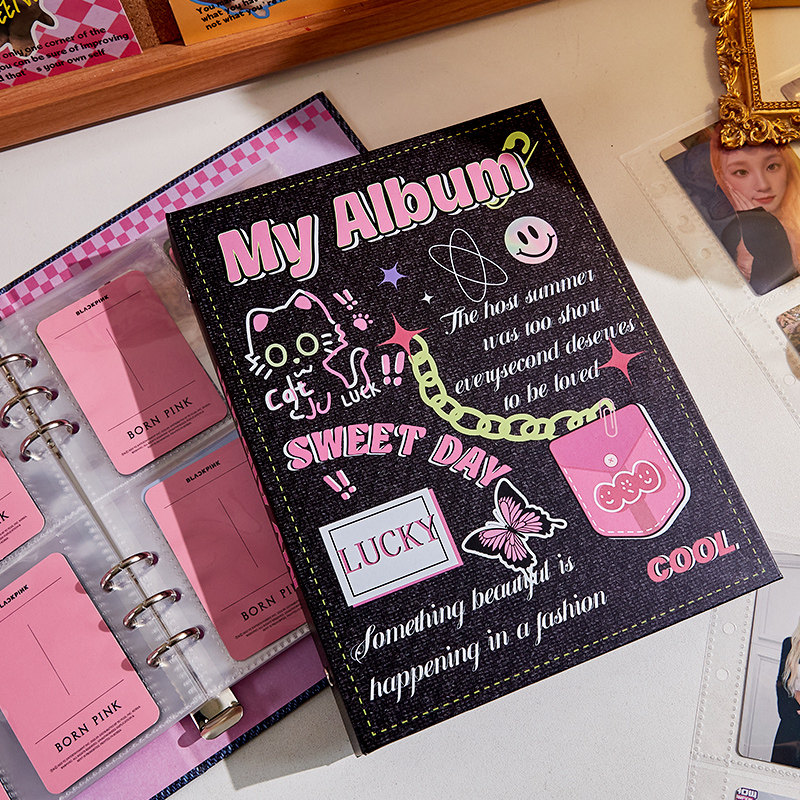 浪漫美式3寸活页四宫格卡册高颜值ins风小卡卡片追星收纳册大容量卡套高清高透内页明信片电影票拍立得相册