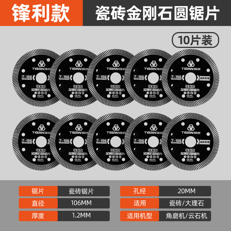 铁邦瓷砖切割片切割机倒角机锯片玻化砖干切不崩边全瓷岩板用锯片