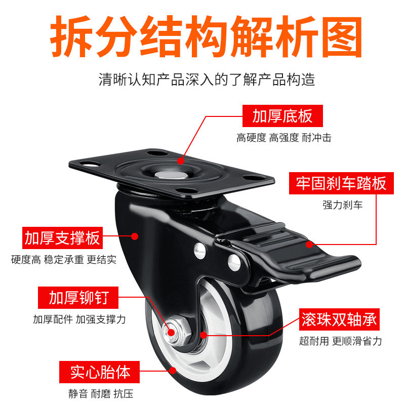 重型万向轮轮静音脚轮滑轮定向老板椅带刹车小轮子移动滚轮丝杆