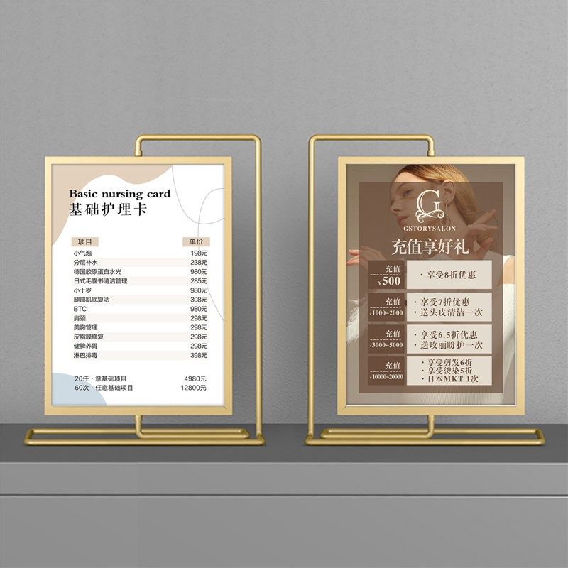 美容院价目表皮肤管理价格表美睫美甲设计旋转展示牌摆台定制桌牌