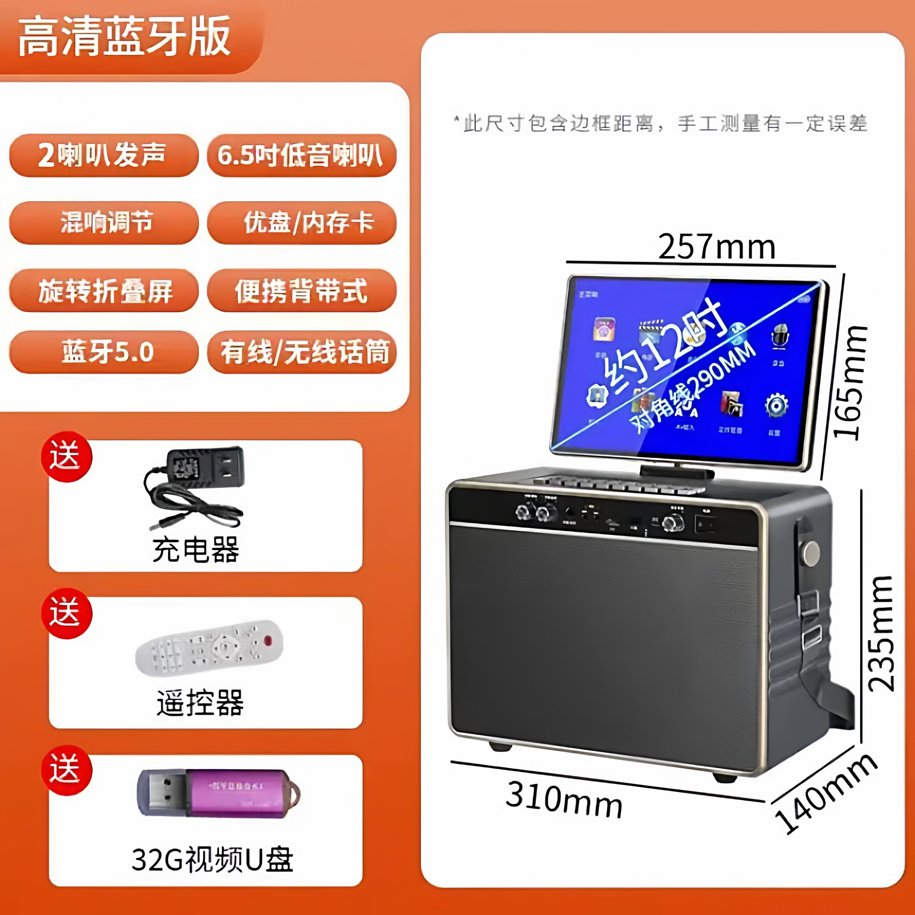 华宝广场舞音响带显示屏户外唱k套装点歌机歌卡拉ok一体机家庭ktv