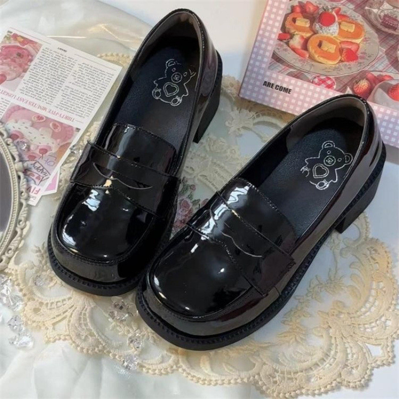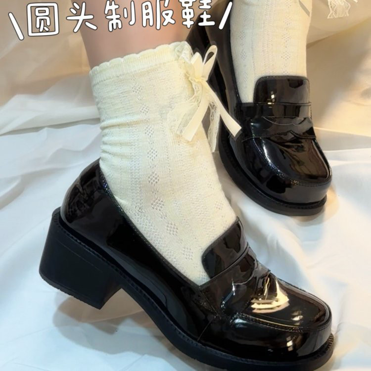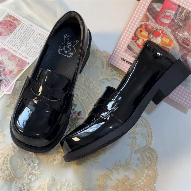 2025春秋新款女鞋方头jk制服鞋粗跟学院风兔耳朵小皮鞋学生乐福鞋