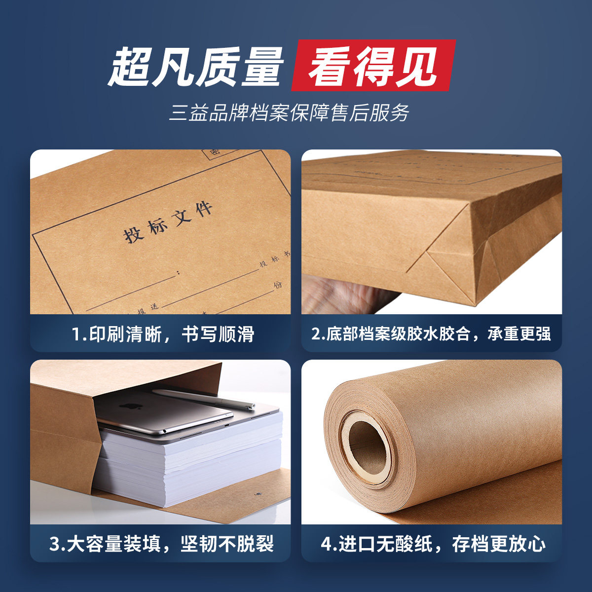 投标文件袋A4大容量标书密封袋招标文件袋牛皮纸档案袋投标专用资料袋收纳袋15cm加厚送不干胶密封条