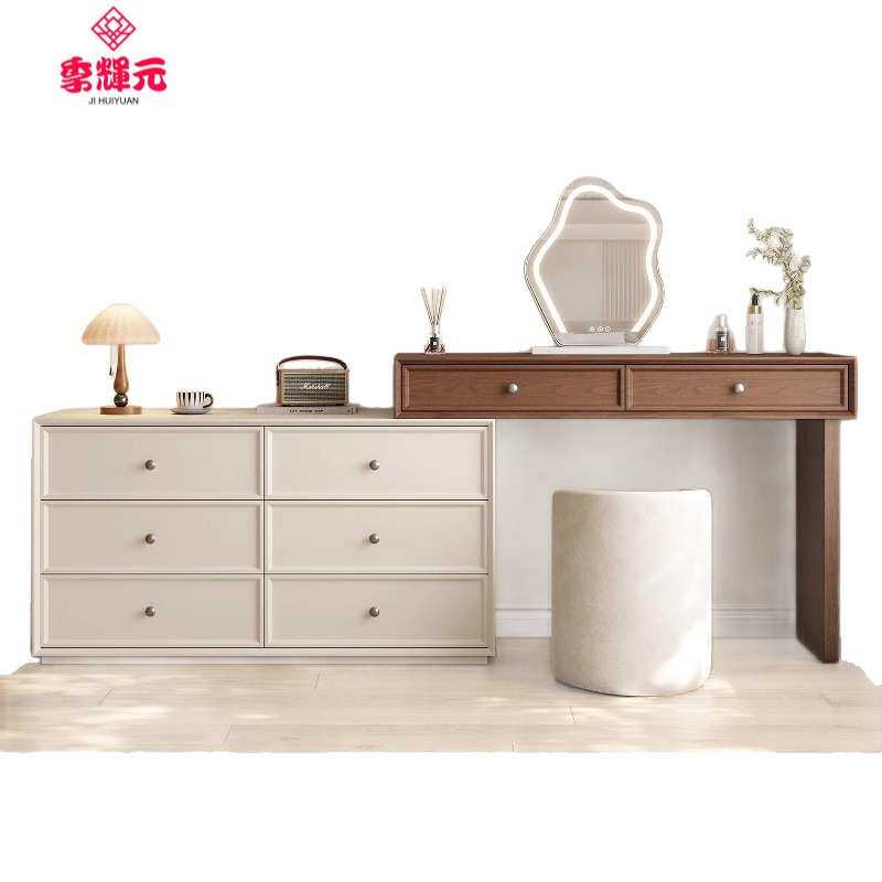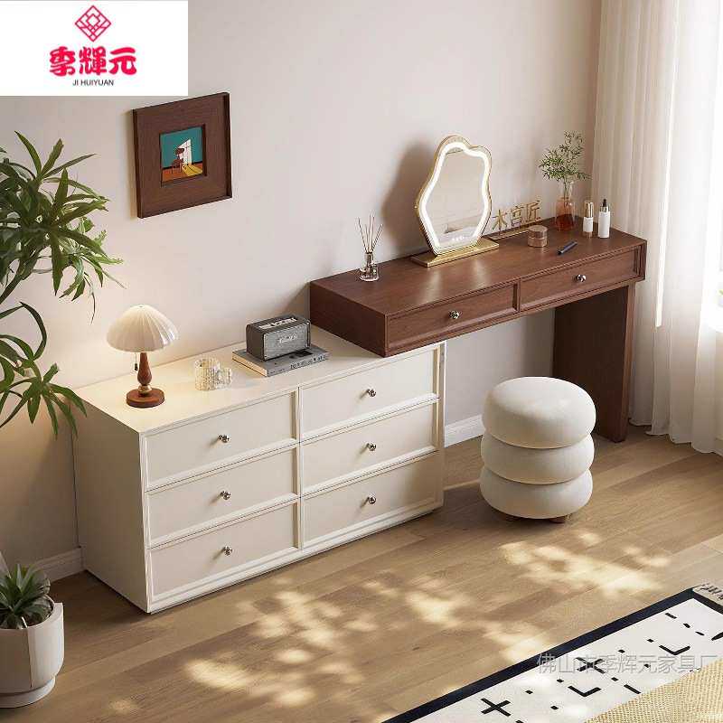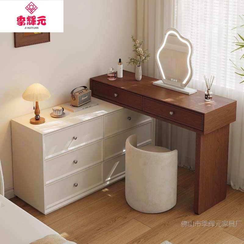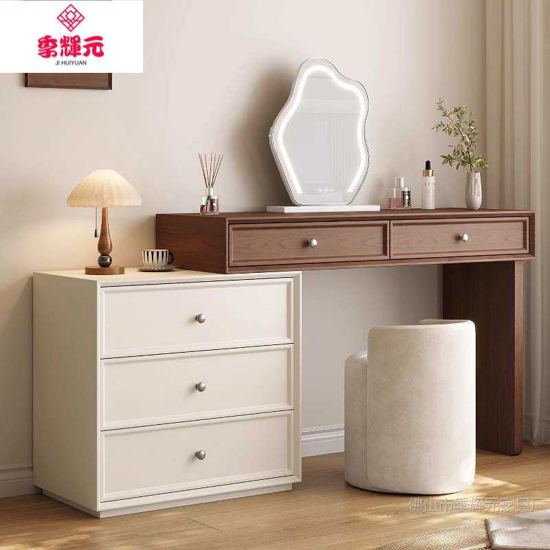 季辉元胡桃木中古风梳妆台极简奶油小户型卧室斗柜一体实木化妆桌