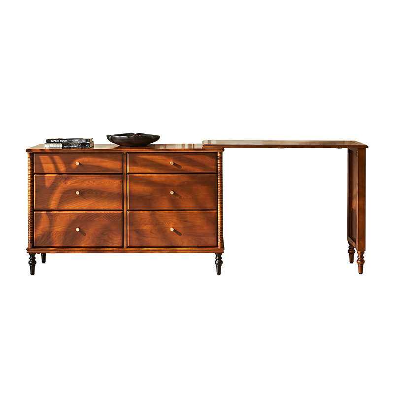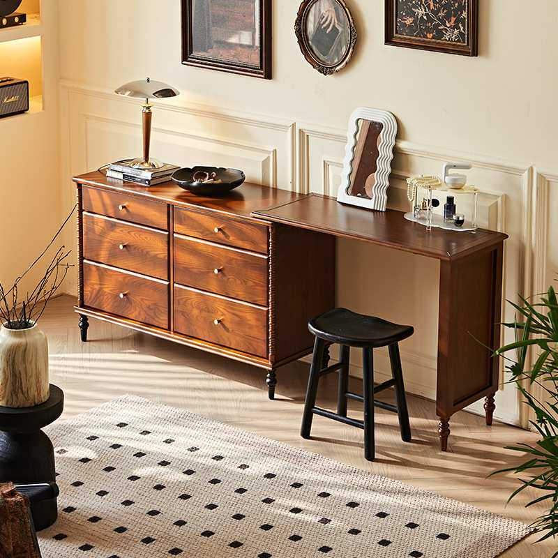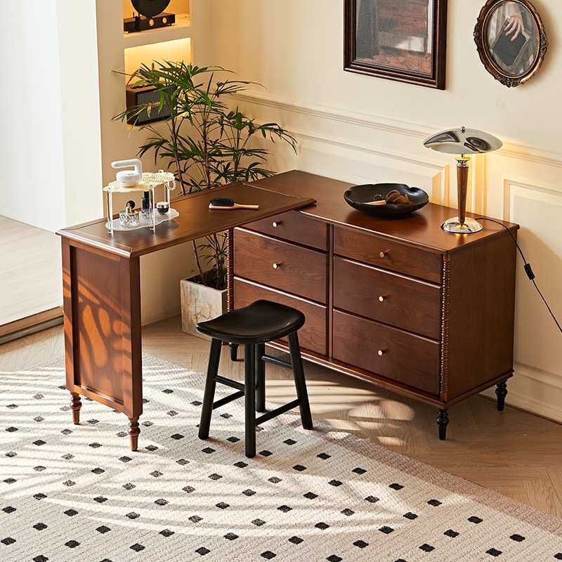 法式复古实木斗柜化妆台中古风家用床边可伸缩多功能收纳化妆桌子