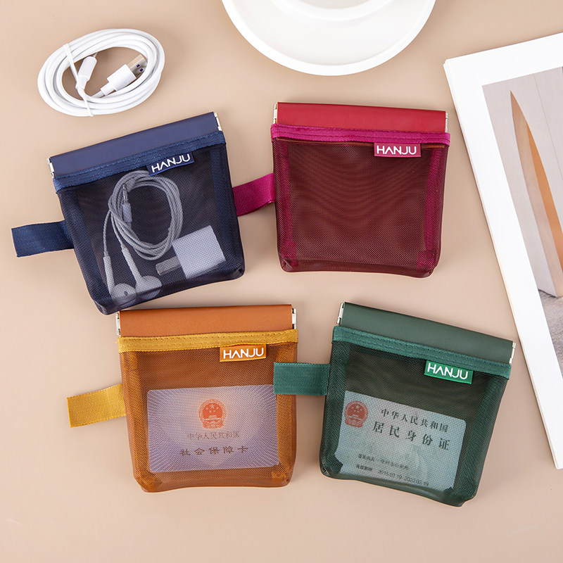 弹片迷你收纳包口红化妆袋零钱小包便携式透明化妆品包内包旅行小卡包文件袋透视轻便网纱小卡袋钥匙包卡片袋