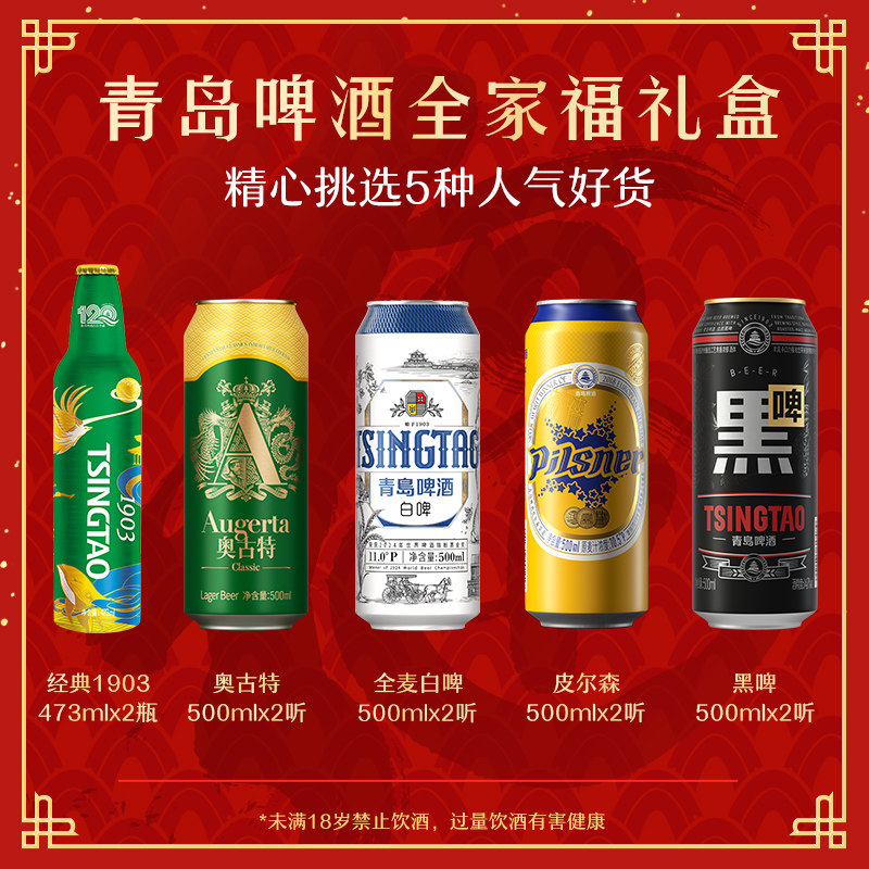 青岛啤酒全家福礼盒5款人气单品 精美春节新春年货喜庆礼盒