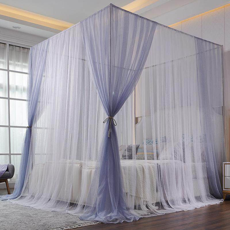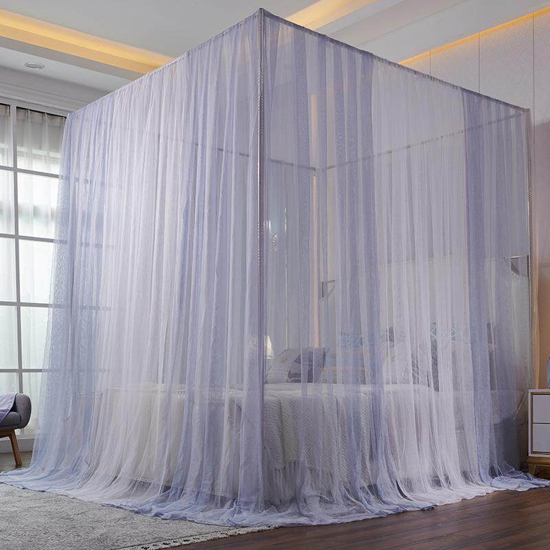 三开门落地蚊帐1.5m床双层色公主风1.8m双人家用支架纹账2米床1.2
