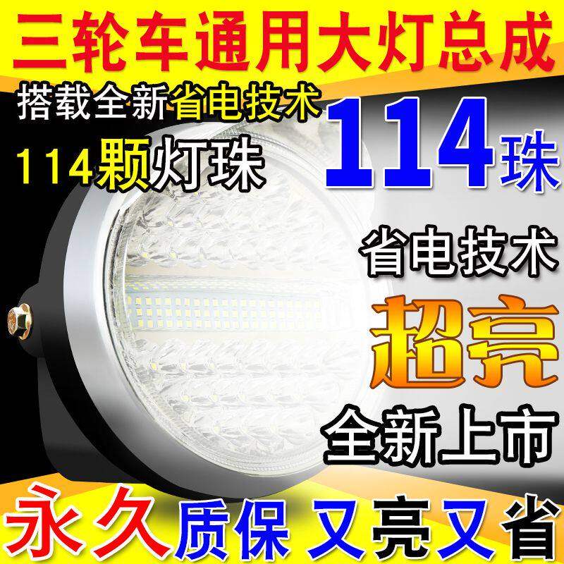 电动三轮车大灯超亮led电动车大灯12v48v60v通用大灯总成强光防水